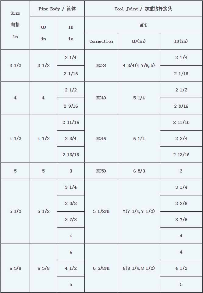 生产加重钻杆规格: