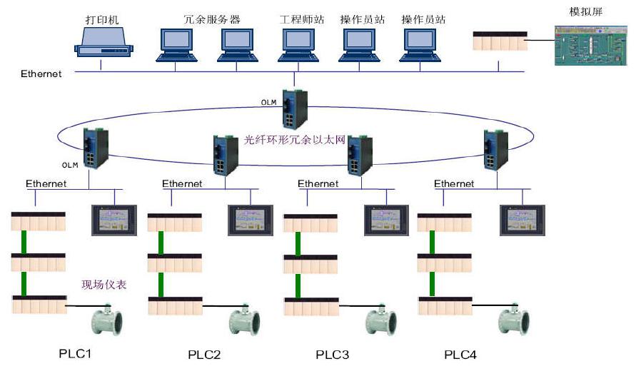 监控计算机负责生产工艺过程的实时监控,管理计算机负责数据处理和编辑输出生产报表。当其中一台机故障时,可由另一台机替代。